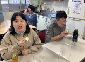収穫したさつまいもをさっそく食べました。蒸かしたてのお芋はホクホクで甘みもしっかりありました。他にも簡単で手間いらずのスイートポテト風を作りました。こっちも大好評で収穫できた喜びをみんなで共有できました。