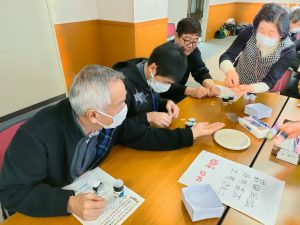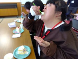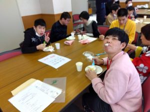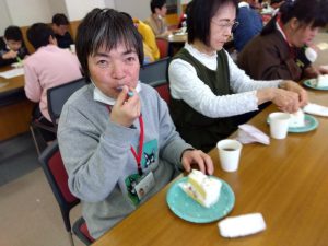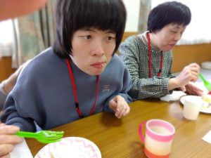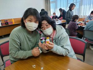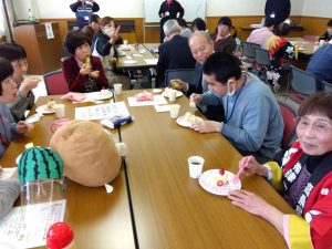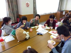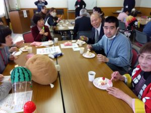 紙芝居に鳴子を使った音楽活動、ひなまつりの工作と歌を楽しみ、ケーキを食べながらの歓談と盛りだくさんの内容で、利用者さん、関係者の方々、職員とみんなで楽しめるイベントとなりました。