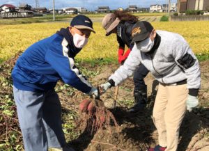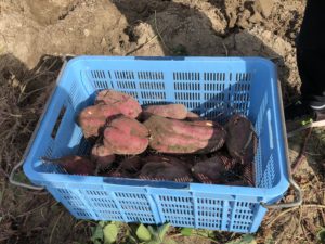さつまいもを収穫しました。大きなお芋がゴロゴロ出てきて大成功です!量もたっぷりあるのでみんなで色々な食べ方をしてみたいです。里芋も少し小ぶりでしたが、ちゃんとできていて良かったです。どんなお味か今から楽しみです。